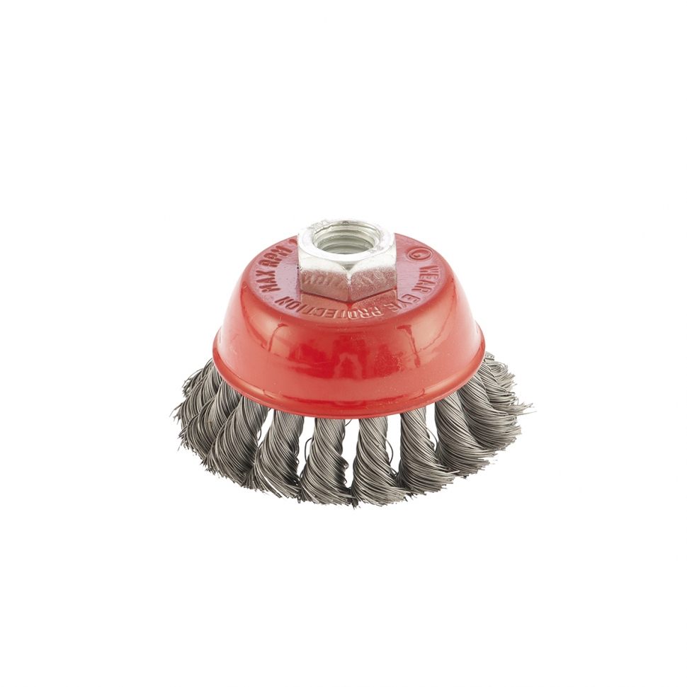Форма щетки – «чашка», предназначена для производительной обработки значительных по площади поверхностей, удалению краски, ржавчины и других загрязнений.