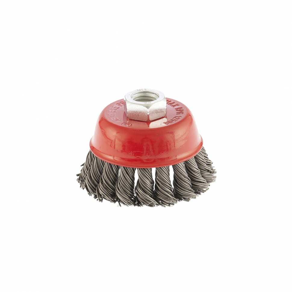 Форма щетки – «чашка», предназначена для производительной обработки значительных по площади поверхностей, удалению краски, ржавчины и других загрязнений.