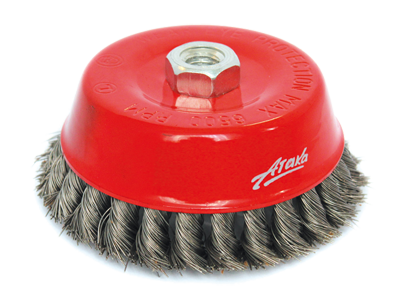 Выбирайте щетку исходя из этапа обработки материала (грубое шлифование поверхности, щадящее шлифование). Наиболее агрессивное воздействие на поверхность оказывают щетки с витой проволокой. Гофрированная проволока работает более деликатно.