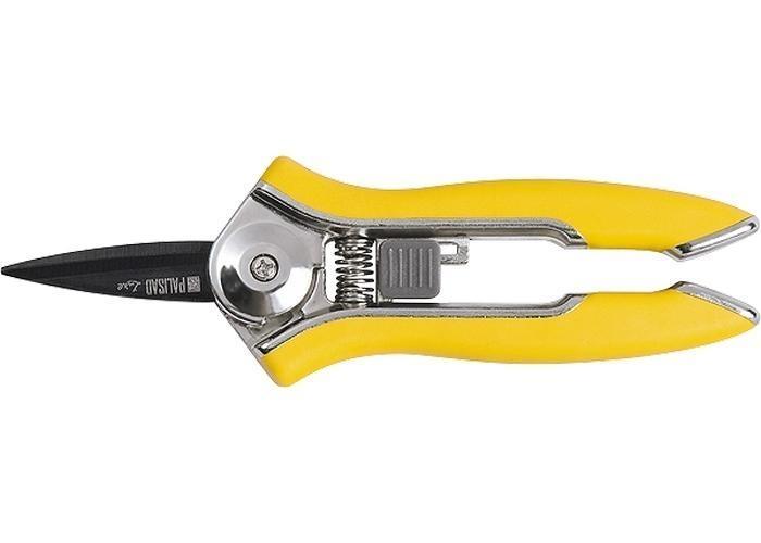 Цветочный секатор с прямым резом. Удобные металлические рукоятки имеют резиновые вставки и оснащены боковым фиксатором. Предназначен для ухода за цветами и растениями. Основание выполнено из нержавеющей стали. Лезвия изготовлены из японской стали SK5, закалены и остро заточены. Тефлоновое покрытие лезвий обеспечивает легкость реза и максимальную защиту от коррозии.