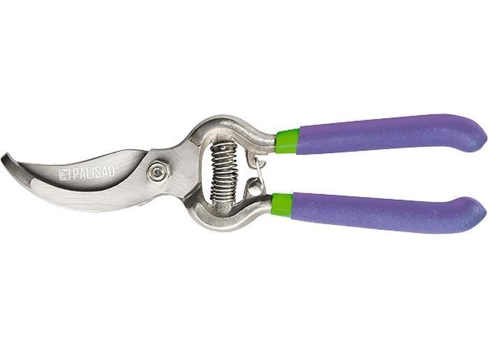 Секатор с коваными изогнутыми лезвиями, представляющими собой единое целое с рукоятками, и фиксатором в виде крючка. Для удобства работы рукоятки обрезинены в два слоя. Секатор целиком изготовлен из легированной стали, лезвия дополнительно закалены и остро заточены.