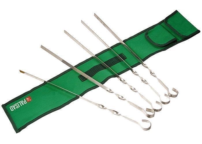 В комплекте 6 шампуров, нейлоновый чехол. Длина: 450 мм. Ширина: 10 мм. Толщина: 1,5 мм. Все шампуры изготовлены из пищевой нержавеющей стали марки 2Сr13. Толщина шампуров составляет 1,5 мм, благодаря чему они не деформируются и не прогибаются под тяжестью продуктов. Винтовые ручки на шампурах, легко проворачивающиеся в прорезях мангала, обеспечивают максимально равномерное приготовление продуктов. Чехол в комплекте удобен для хранения набора и особенно для его транспортировки.