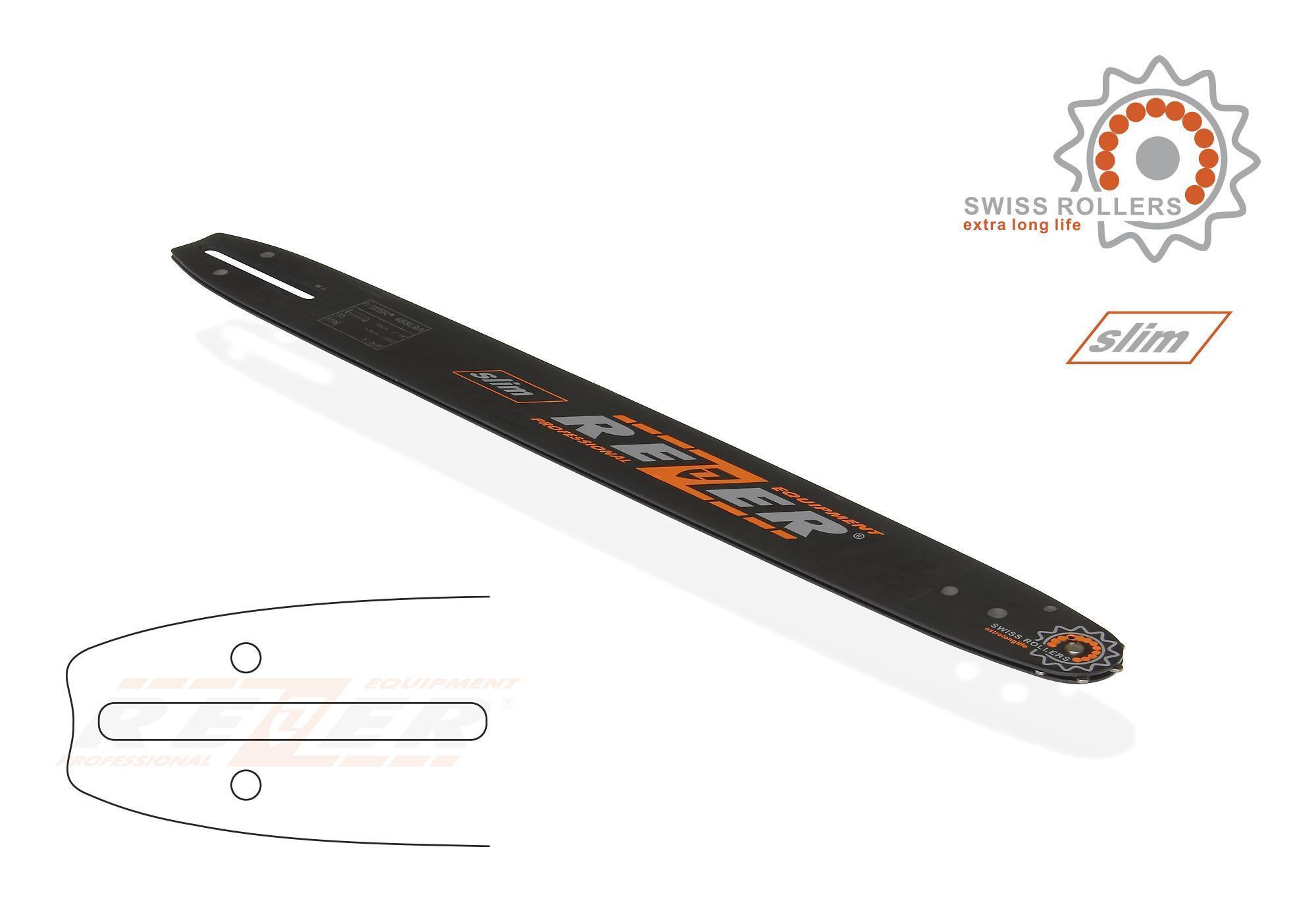 Шины Rezer с узким профилем имеют легкий вес и идеально подходят для использования на пилах любительского класса. Носовая часть шины малого радиуса способствует уменьшению отдачи, что обеспечивает дополнительную безопасность. Данные шины предназначены для наиболее распространенных бытовых цепных пил. Имеют узкий паз (1,3 мм/0,050” — slim)