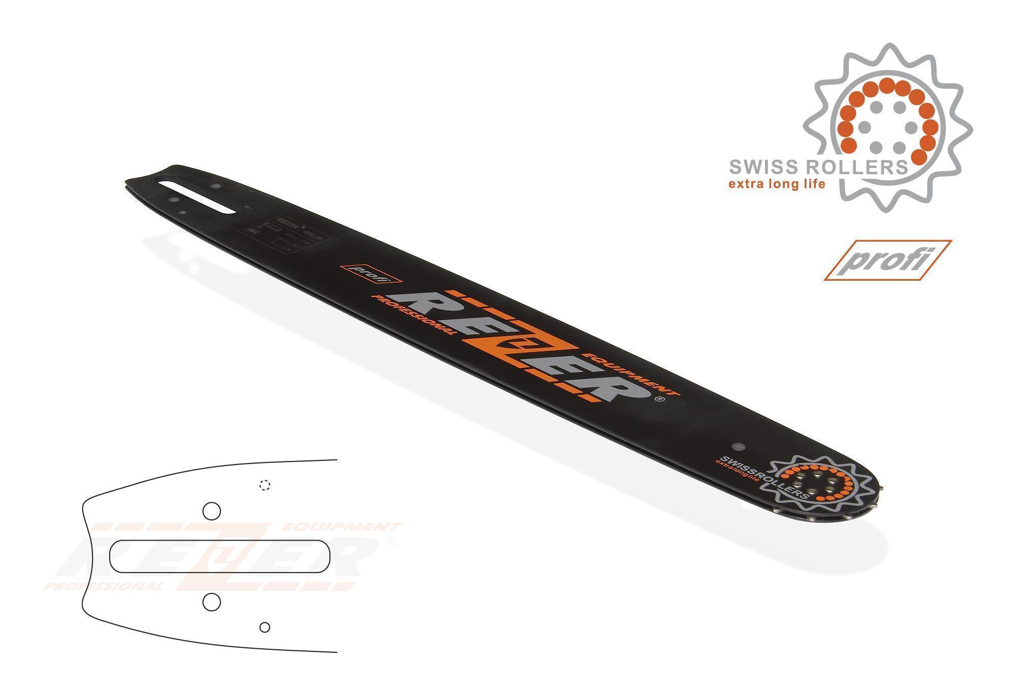 Шины Rezer со стандартным профилем, предназначенные для использования на цепных пилах профессионального класса. Благодаря прочному креплению ведомой звездочки обеспечивается высокая стойкость к нагрузкам и максимальный ресурс. Толщина ведущего звена цепи на направляющих шинах с маркировкой «profi» составляет 1,6 мм/0,063”. Длина от 40 см до 50 см.