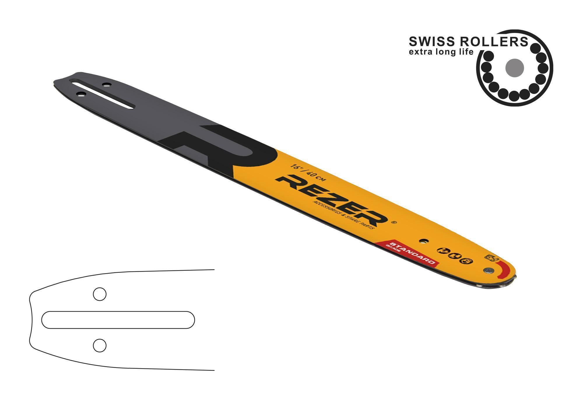 Шины Rezer STANDARD со стандартным профилем для бензопил любительского и полупрофессионального класса и электропил с мощностью до 2,2 кВт. Имеют усиленное крепление ведомой звездочки, что обеспечивает дополнительную устойчивость к нагрузкам и продлевает срок службы. Так же, как шины с узким профилем, имеют узкий паз (slim) и длину от 35 до 50 см. Standard 403 L 9 A, сварная (Partner,Poulan,Hus-236, 240,Homelite331,Makita 16"-56зв.) Rezer