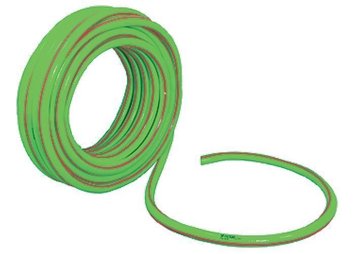 Трехслойный садовый шланг с высокопрочным армирующим кордом и гибкими, но прочными стенками. Выдерживает давление 13 бар.