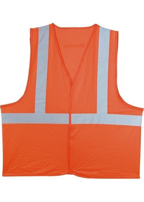 Сигнальный жилет из искусственного шелка ярко-оранжевого цвета со светоотражающей серебристой лентой для темного времени суток. Применяется для обеспечения безопасности при проведении ремонтно-строительных дорожных работ.