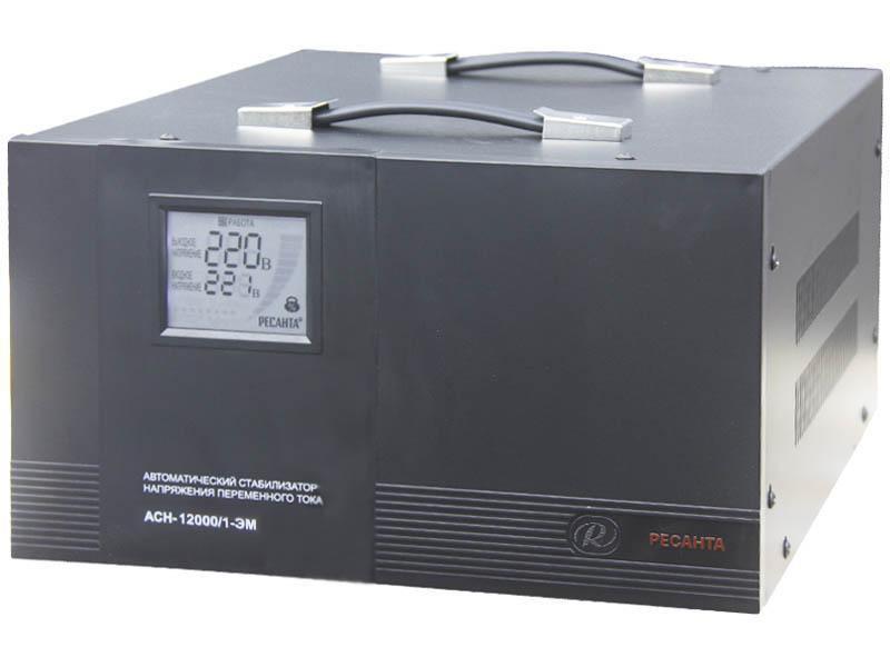 Стабилизатор напряжения Ресанта АСН-12000/1-ЭМ станет надежным помощником в любой квартире, загородном доме или кафе. Устройство эффективно выравнивает колебания тока в сети, защищая электроприборы как от длительных скачков напряжения, так и от коротких импульсных всплесков. Стабилизатор прост в управлении и не требует для использования каких-либо специальных навыков. Все что вам нужно, так это подключить устройство к источнику питания, а от его выхода запитать чувствительную к перепадам электротехнику. Стабилизатор способен работать с входным напряжением от 140 до 260 В, выдавая на выходе правильный 220 В синусоидный сигнал. И хотя многим людям использование подобных приборов кажется лишней тратой денег, на практике это оказывается не так, ведь сломавшийся от скачка в сети телевизор или компьютер может стоить значительно дороже, а если это повторится не раз, то и подавно. Тем более, что от перепадов электричества в наше время не застрахован никто, будь то жители гигантских мегаполисов или глухой деревни. И если в крупных городах эта проблема встречается реже, хотя обслуживание электропроводки ЖЭКом зачастую оставляет желать лучшего, то в небольших населенных пунктах скачки напряжения в сети происходят регулярно.