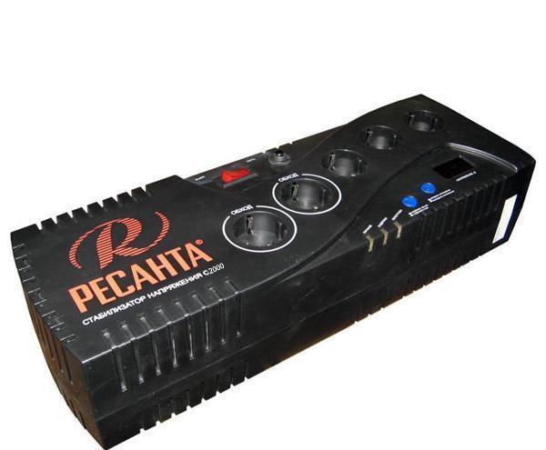 С2000, как и все модели серии, выполнен в прочном компактном корпусе прямоугольной формы, который обеспечивает класс защиты IP 20, что разрешает применять его при относительной влажности не ниже 80 %. Если взглянуть на корпус с лицевой стороны, то в верхней части можно увидеть выключатель, который позволяет быстро включать и отключать устройство по необходимости, и автоматический предохранитель. Ниже, расположены пять выходных евророзеток, соединенных с «землей», первые две из которых подключены в обход стабилизации для подключения энергоемких потребителей, стабильность сети для которых не критична. И три, имеющие стабилизированное напряжение. Под розетками расположился небольшой электронный дисплей, на котором можно видеть информацию о выходном напряжении, а при нажатой кнопке, находящейся рядом, – о входном. Здесь же находится кнопка задержки и индикационные лампы, сигнализирующие о наличии питания, задержки и перегрузки. Говоря о корпусе, необходимо так же упомянуть и об охлаждении, которое в С2000 осуществляется естественным образом посредством специальных отверстий, способствующих отводу теплого воздуха. Вот собственно и все о конструкции данной модели, пора переходить к основным параметрам и особенностям.