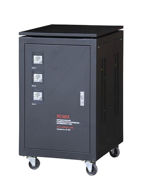 Стабилизатор Ресанта АСН-45000/3-ЭМ — незаменимое устройство для защиты электроприборов от коротких замыканий и перепадов напряжения в сети. С ним вы навсегда забудете о выходе из строя бытовой и промышленной техники, который может возникнуть вследствие некачественного питания. Аппарат бесступенчато сглаживает и длительные перепады, и короткие скачки напряжения, не внося никаких искажений в выходной синусоидный сигнал. Стабилизатор отлично подойдет для обеспечения качественным током различных соляриев, станков, насосов, сварочных аппаратов и других трехфазных приборов, которым для нормальной работы требуются ровные 380 В. Прибор будет одинаково полезен как для производственных помещений или строек, так и для салонов красоты, кафе или частных домов. Он способен надежно защитить электроприборы от любых проблем, начиная от повреждения подстанций или токонесущей проводки, и заканчивая коротким замыканием или несбалансированным разделением напряжения по фазам.