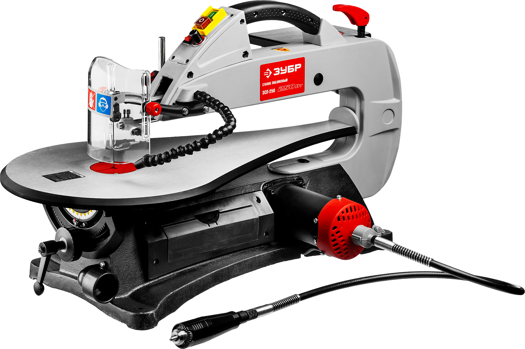 Патрубок обдува и подсветки места реза для удобства обзора при пилении