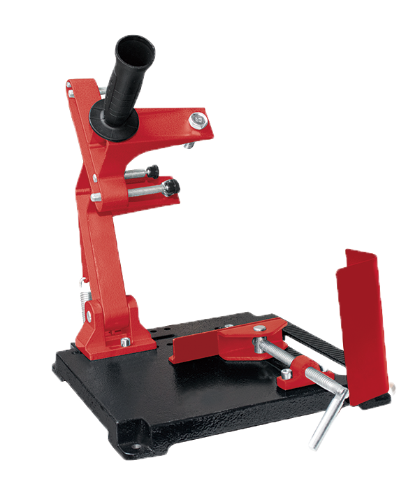 Стойка для УШМ P0010007 (диаметр круга 180-230мм, угловые тиски 45 град, литое основание). Стойка предназначена для угловых шлифовальных машин с диаметром диска 180-230 мм. Ее используют для стационарных работ.