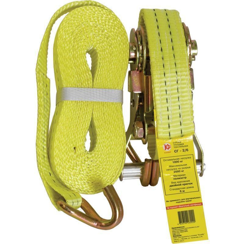 КАЛИБР Стропа грузовая текстильная СГ-2/6 (2000кг, 6метров) двойной крюк