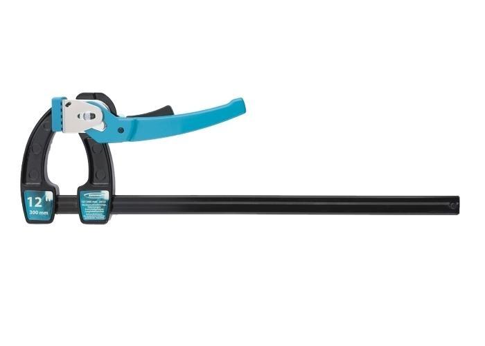 Струбцина реечная торговой марки GROSS предназначена для надежного зажима и удержания заготовок различных конструкций толщиной до 300 мм. Шина струбцины изготовлена из холоднотянутой стали. Стопорный механизм VIBRAFIX позволяет создать усилие в 1200 Н и удерживать его. Прижимная губка струбцины, оснащенная резиновой накладкой, защищает от повреждений обрабатываемую поверхность заготовки.