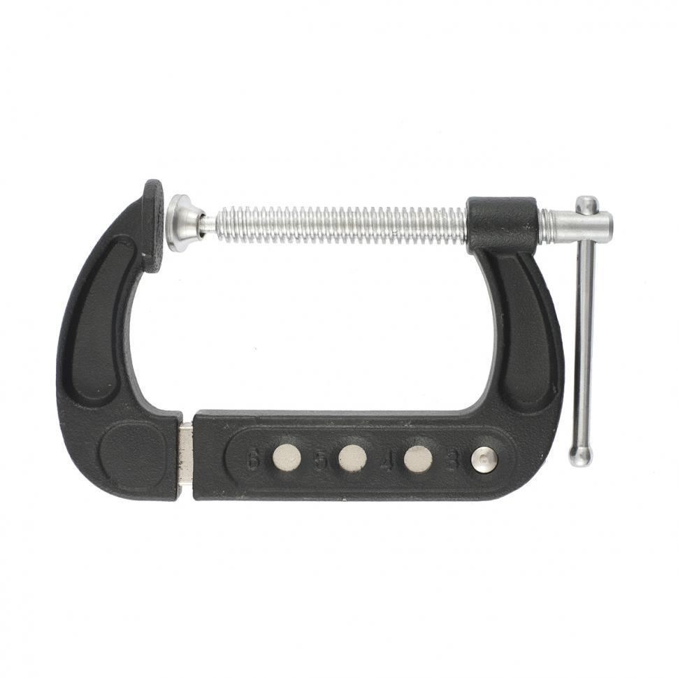 Предназначена для механической фиксации деталей при склейке, а также крепления заготовок на верстаках и станках во время столярных и слесарных работ.Характеристики: быстрая смена величины зева,изготовлена из углиродистой стали, имеет порошковое покрытие корпуса, максимальное усилие при затягивании составляет- 453кг.