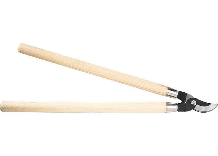 Сучкорез с прямым резом, деревянные рукоятки. Предназначен для выполнения работ по уходу за садом. Рекомендуется для дистанционной обрезки живых веток диаметром до 30 мм. Режущее лезвие изготовлено из инструментальной стали У8, остро заточено и имеет оксидированное покрытие для защиты от коррозии. Деревянные рукоятки защищены от рассыхания бесцветным лаком.