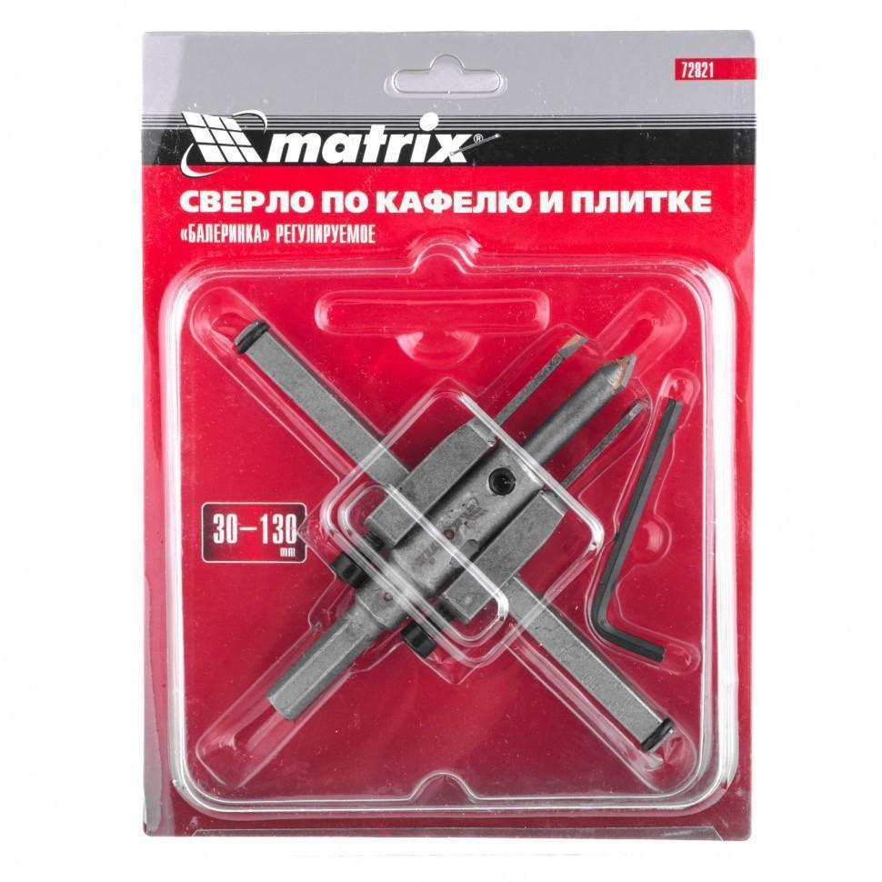Сверло Matrix «Балеринка» 72821, регулируемое в диапазоне 30-130 мм, рассчитано на получение отверстий в материалах толщиной 4-12 мм: керамике, кафеле, кирпиче, плитке и т.д. Оно используется в качестве оснастки на дрелях. Простая, но в то же время надежная конструкция сверла позволяет использовать его как начинающим мастерам, так и профессионалам.