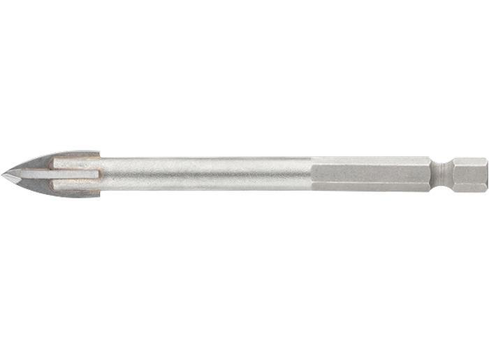 Сверло Барс с крестовой пластинкой и шестигранным хвостовиком, рассчитано на сверление керамической плитки и стекла. Благодаря 4-гранной режущей пластине оно обеспечивает высокую скорость засверливания. Сверло подходит для интенсивного профессионального использования. В процессе работы рекомендуется применять водяное охлаждение для увеличения ресурса сверла.