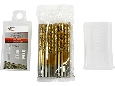 Материал: инструментальная быстрорежущая сталь типа HSS-G с покрытием из нитрида титана, отличающаяся повышенной стойкостью, низким уровнем радиальных биений и снижением трения на нережущих поверхностях сверла. Бокс-10шт