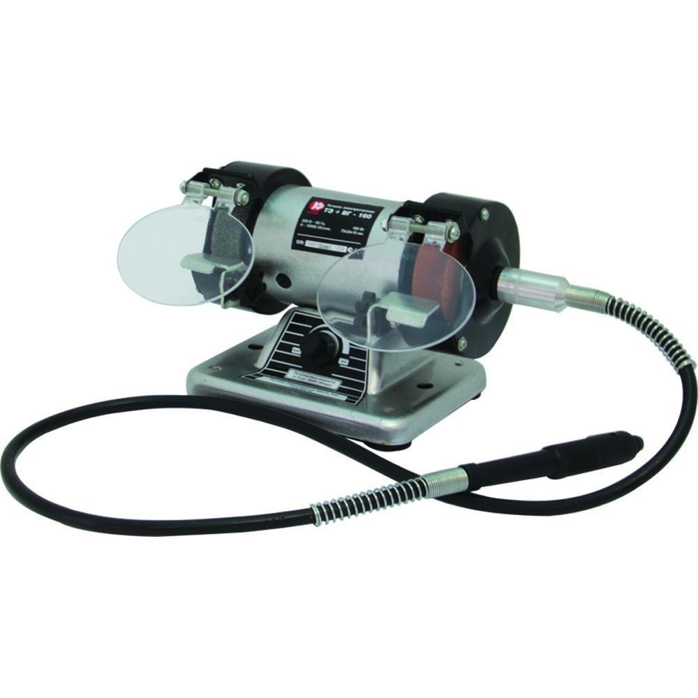Точило электрическое Калибр ТЭ+ВГ-160 с гибким валом предназначено для сухой заточки, шлифования и полирования различных изделий в бытовых условиях. Абразивные круги (шлифовальные, полировальные) являются основным рабочим инструментом для сухой обработки разнообразных предметов. Кроме того, вращения с якоря двигателя может передаваться на гибкий вал через переходник. На цанговый патрон гибкого вала устанавливаются насадки,аналогичные используемым в гравёрах. Для безопасной работы на защитных кожухах крепятся: прозрачные (защитные) экраны и рабочие упоры, обеспечивающие опору обрабатываемому предмету.