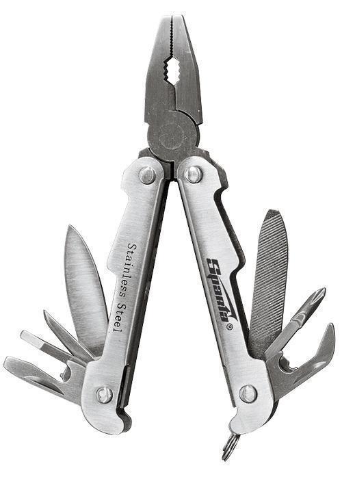 Универсальный набор инструментов. Размер в рабочем положении 113 мм. В комплект входят: плоскогубцы, кусачки, захват круглых предметов, крестовая отвертка, консервный нож, открывалка для бутылок, отвертки шлицевые – средняя и малая, пилка, шило, напильник, большой нож. Незаменим в поездках за город, на пикник, охоту, рыбалку. Компактный, многофункциональный и удобный.