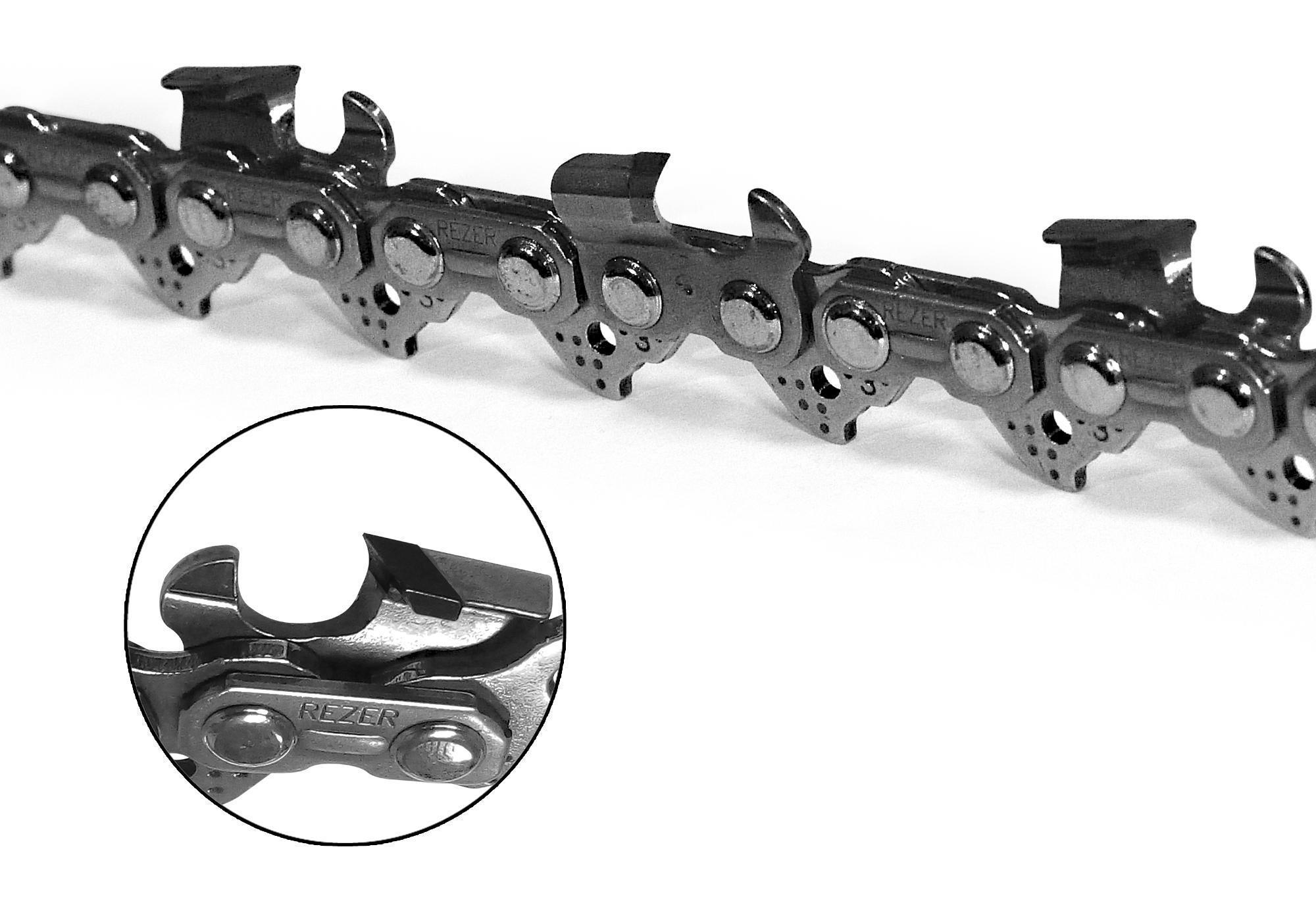 Специальная пильная цепь с режущими звеньями из твердого сплава. Для работы при экстремальных нагрузках. Увеличенный срок службы при пилении загрязнённой и горелой древесины.