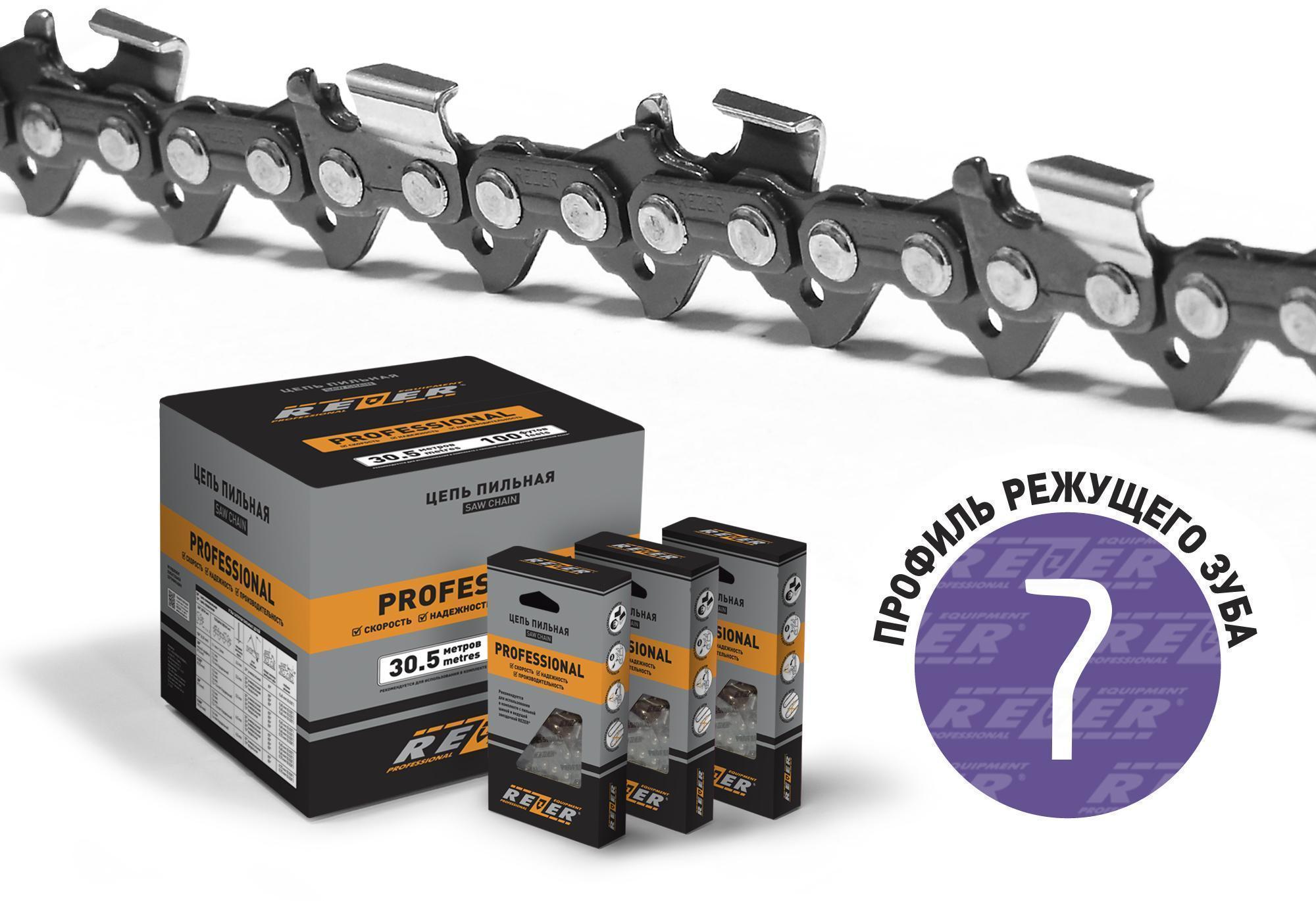 Цепи REZER предназначены для использования на цепных пилах различных моделей и классов. Конструкция средних звеньев способствует снижению вибрации, а конструкция направляющих звеньев обеспечивает дополнительную смазку, что продлевает ресурс пильного аппарата и создает комфортные условия пиления. Цепи REZER поставляются как в готовых к применению кольцах, так и в бухтах по 30,5 м (100 футов).