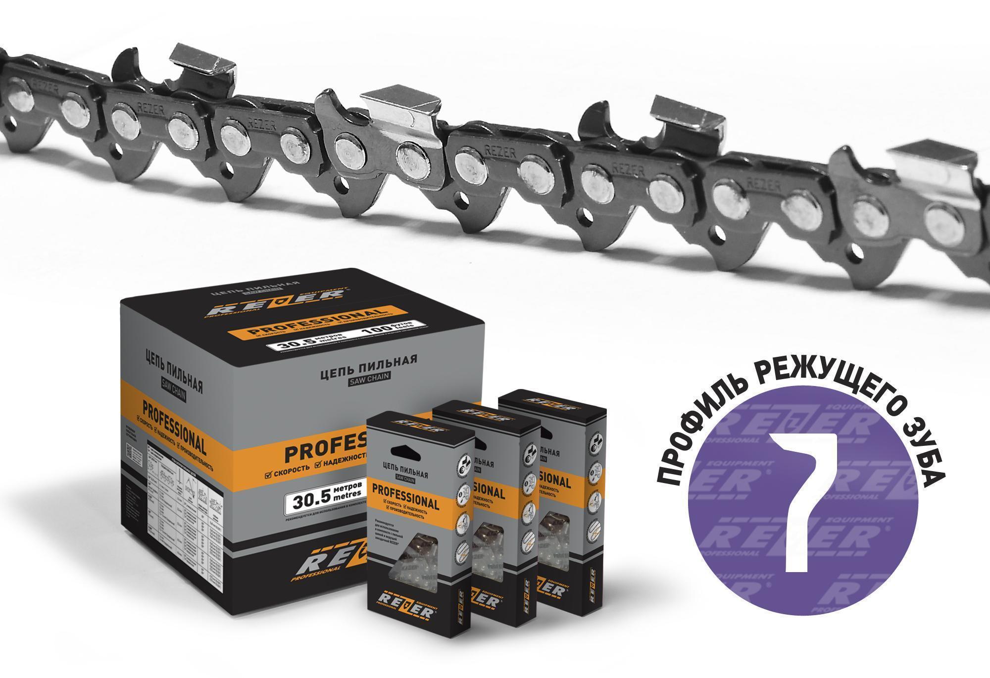 Цепи REZER предназначены для использования на цепных пилах различных моделей и классов. Конструкция средних звеньев способствует снижению вибрации, а конструкция направляющих звеньев обеспечивает дополнительную смазку, что продлевает ресурс пильного аппарата и создает комфортные условия пиления. Цепи REZER поставляются как в готовых к применению кольцах, так и в бухтах по 30,5 м (100 футов).