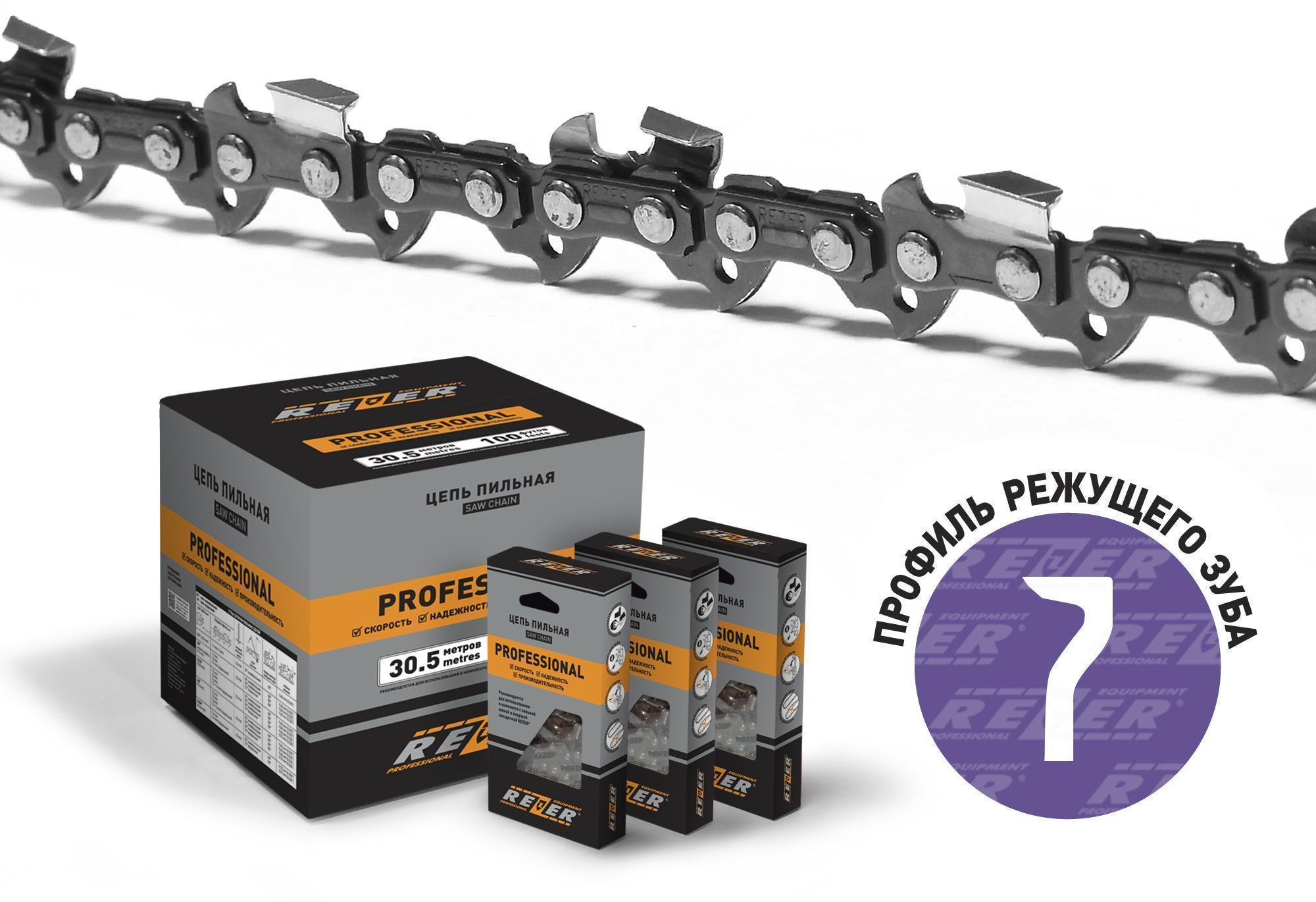 Цепи REZER предназначены для использования на цепных пилах различных моделей и классов. Конструкция средних звеньев способствует снижению вибрации, а конструкция направляющих звеньев обеспечивает дополнительную смазку, что продлевает ресурс пильного аппарата и создает комфортные условия пиления. Цепи REZER поставляются как в готовых к применению кольцах, так и в бухтах по 30,5 м (100 футов).