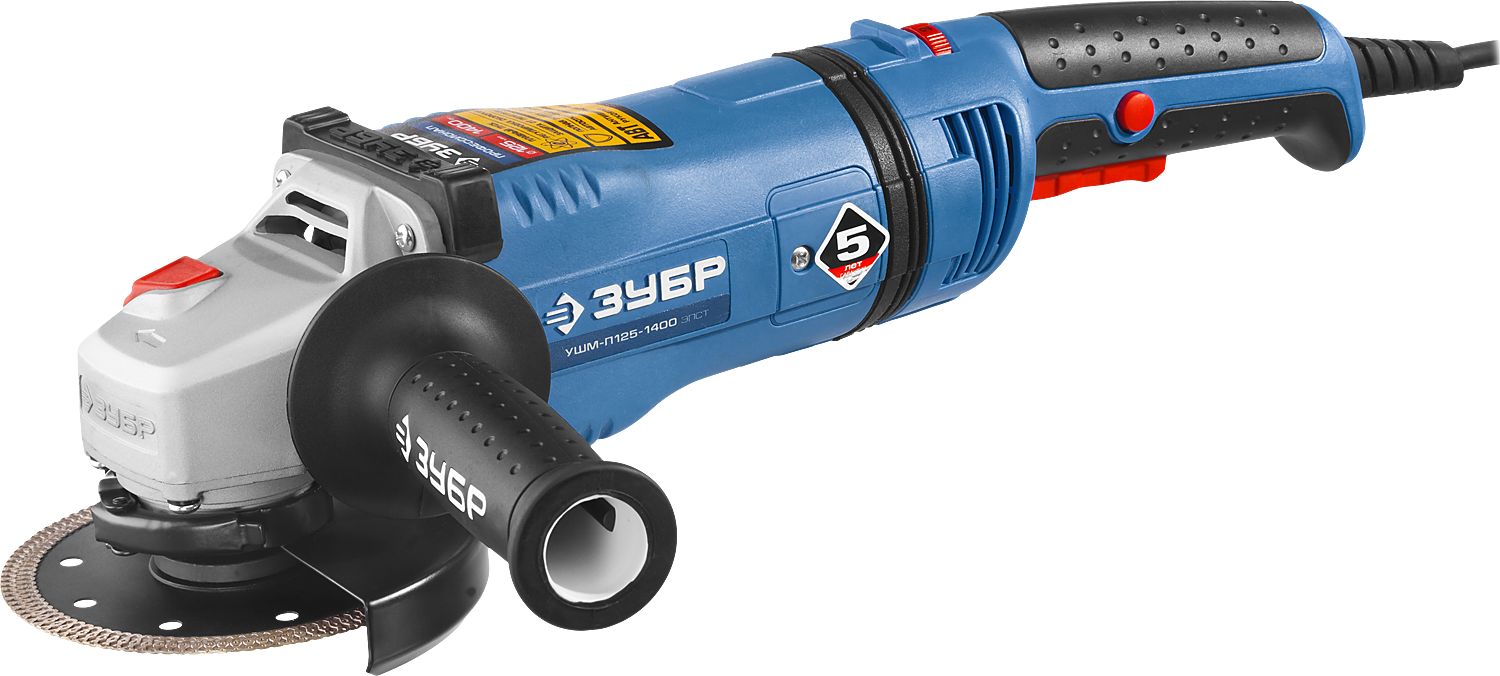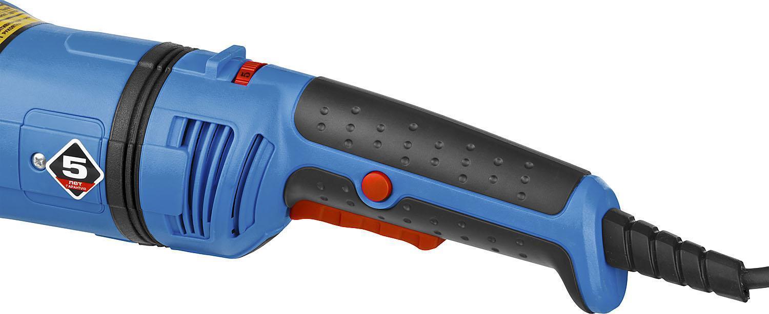 - Компактная, но довольно мощная и производительная модель в ассортименте ЗУБР; — Специально разработанный корпус редуктора для улучшения теплоотвода и обеспечения прочности самого нагруженного узла; — Все возможные электронные системы для лучшего качества: — — плавный пуск позволяет раскручивать мощный двигатель без рывка и пусковой перегрузки; — — плавная регулировка оборотов для различных видов работ; — — поддержание оборотов помогает работать без потери производительности при любой нагрузке; — — защита от перегрузки предохраняет оператора из изделие при заклинивании диска; — Надежная защита основных узлов от пыли: — — ротор с капроновым бандажом и дополнительным слоем защитного лака; — — пылезащищенный выключатель, имеющий степень защиты IP5X; — — лабиринтное уплотнение всех шариковых подшипников создает непроницаемый для пыли воздушный барьер; — Антивибрационная основная рукоятка для более комфортной работы при самых неблагоприятных условиях; — Возможность поворота основной рукоятки вокруг своей оси — это естественный хват при любой ориентации инструмента; — Поворотная с шагом 90 градусов голова для комфортной работы в сложных условиях; — Защитный кожух диска с простой фиксацией без инструмента; — Удобная блокировка шпинделя для быстрой замены диска; — Фланцы диска из разного материала предотвращают закусывание диска при работе; — Фирменная дополнительная рукоятка с обрезинкой, устанавливаемая в 2 положениях; — Эргономичный выключатель с удобной кнопкой; — Самоотключающиеся щетки с простой заменой; — Кабель питания с увеличенной длиной 3м в резиновой изоляции.