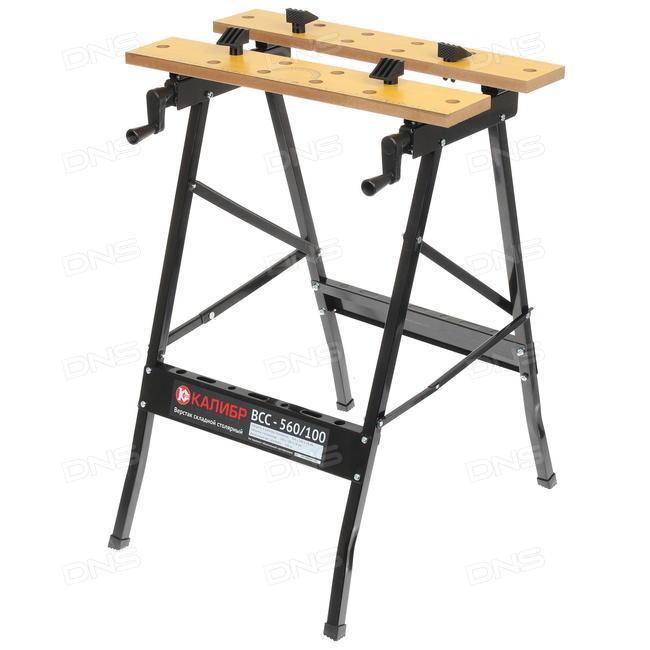 Описание — Легкий, компактный, предназначен для быстрого и удобного крепления заготовок различной формы между держателями двух столешниц. — Имеет возможность складывания, что позволяет удобно хранить верстак без его предварительной разборки. — Механизм с ходовым винтом, расположенный в салазках стола, позволяет сдвигать/раздвигать столешницы, закрепленные на кронштейнах салазок. — Линейка и транспортир на одной из сторон предназначены для точной обработки закрепляемых деталей. Размер столешницы: 560х100х18, размеры в упаковке: 885х110х105, размеры в рабочем положении: 560х620х755, допустимый вес заготовки: 100 кг.